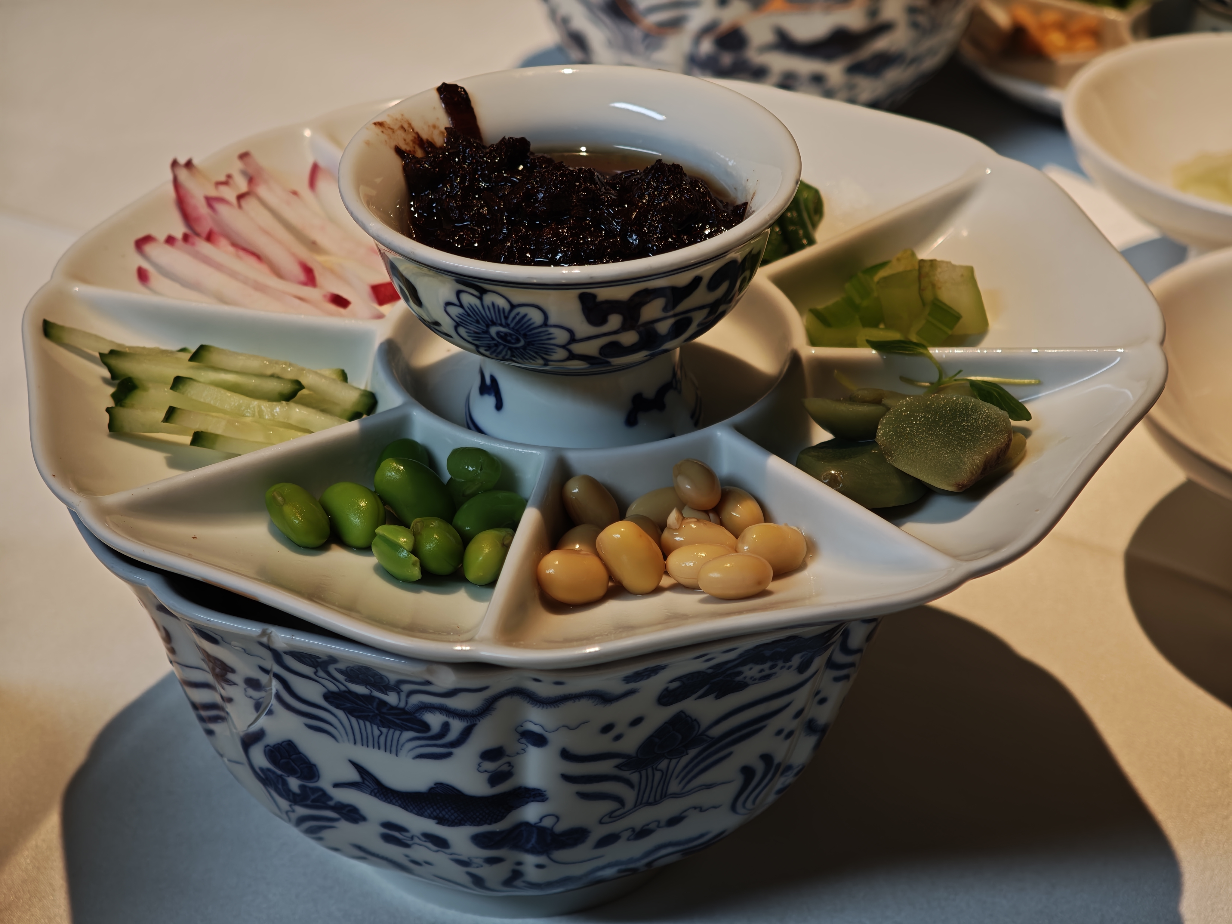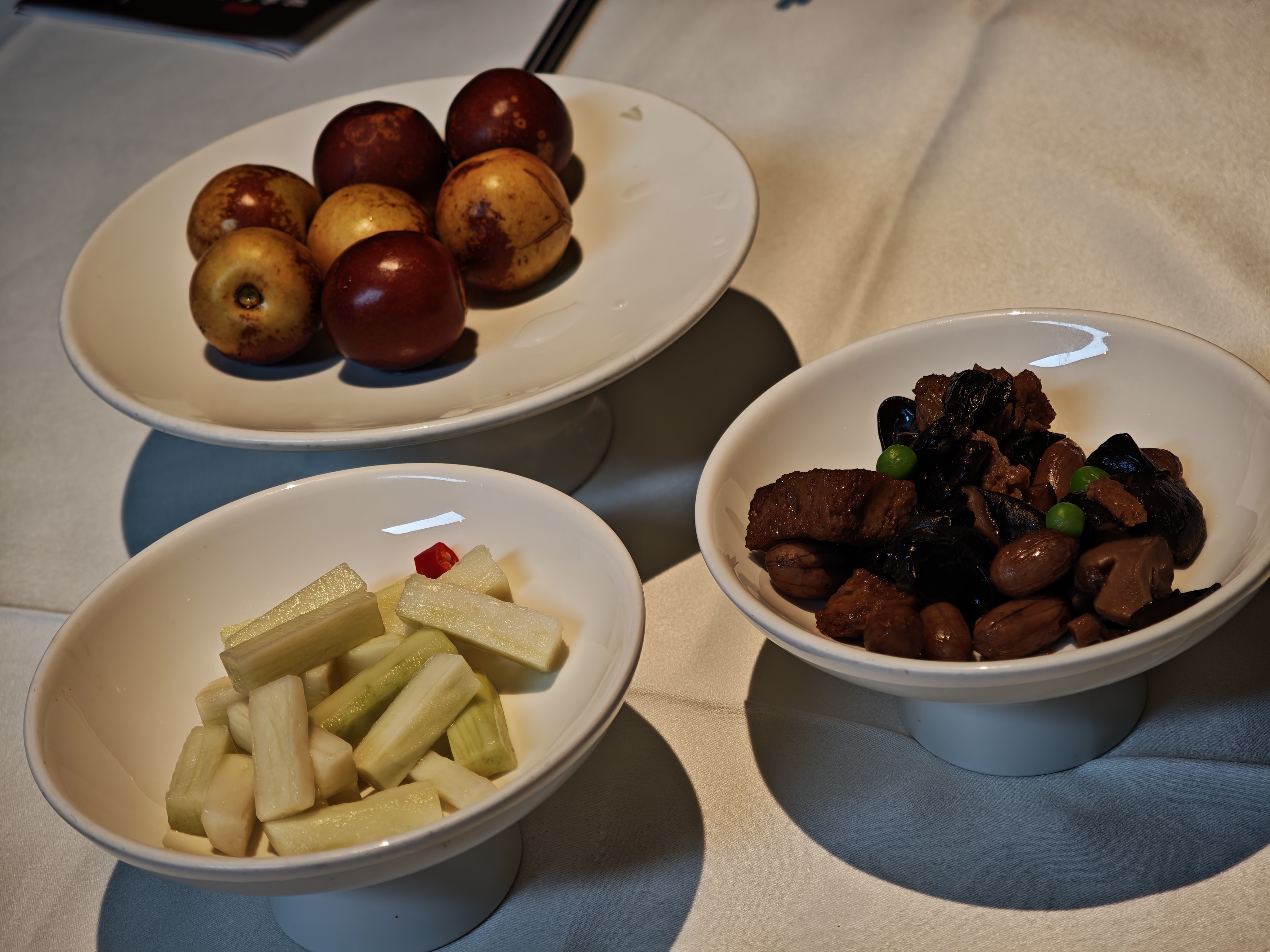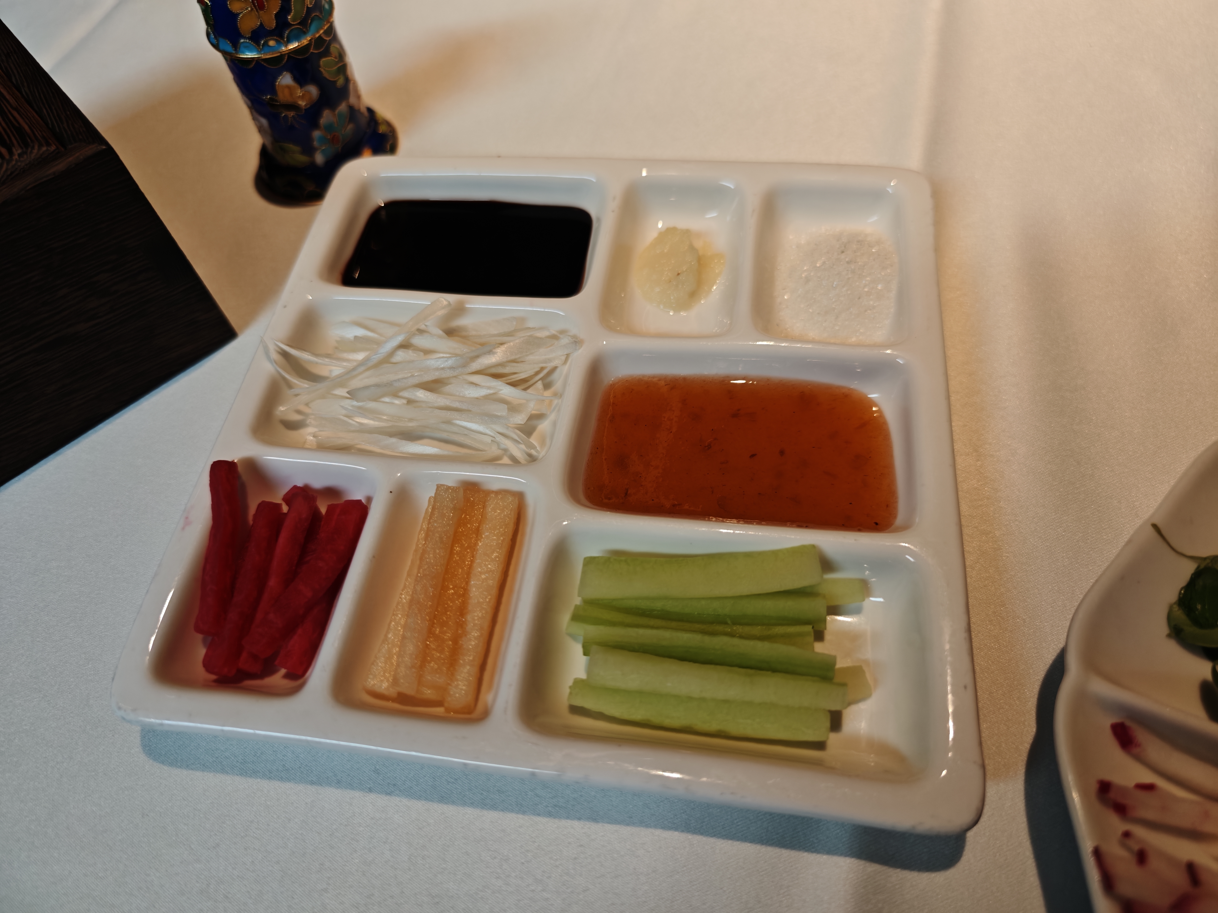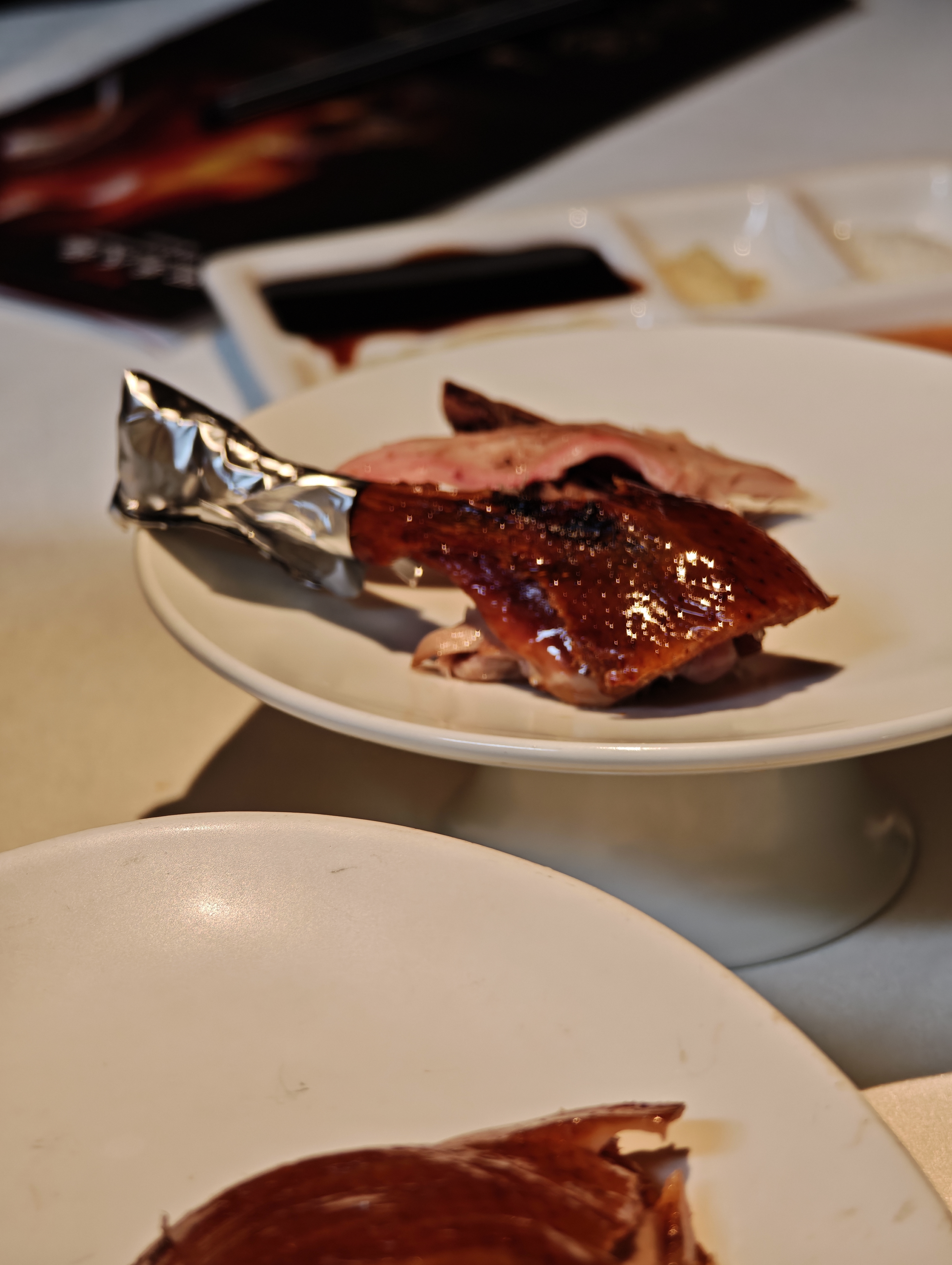 烤鸭配料也特别多,除了常见的还有山楂条、蜜瓜条、酸梅酱,确实好吃。