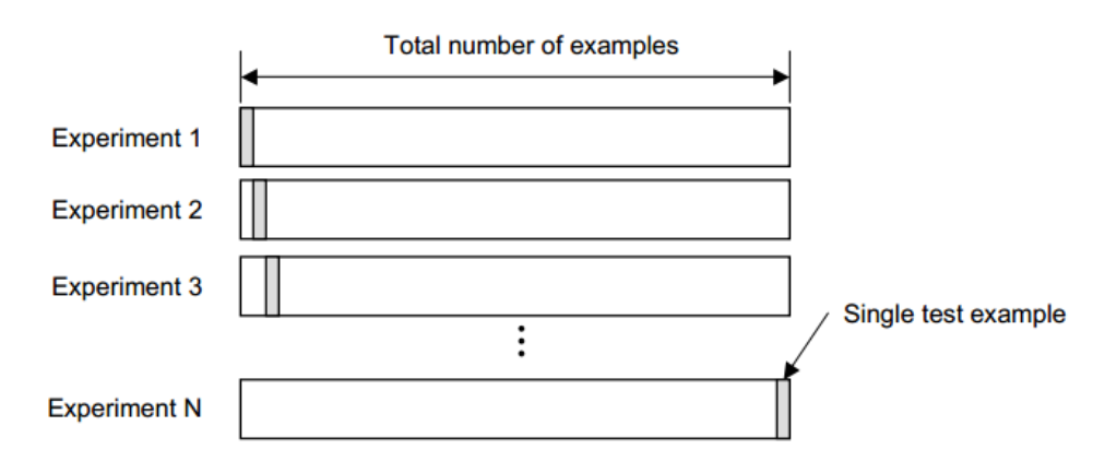 直接将数据分为\(K\)个折(folds),每次留一个进行训练,然后用留下的进行测试。